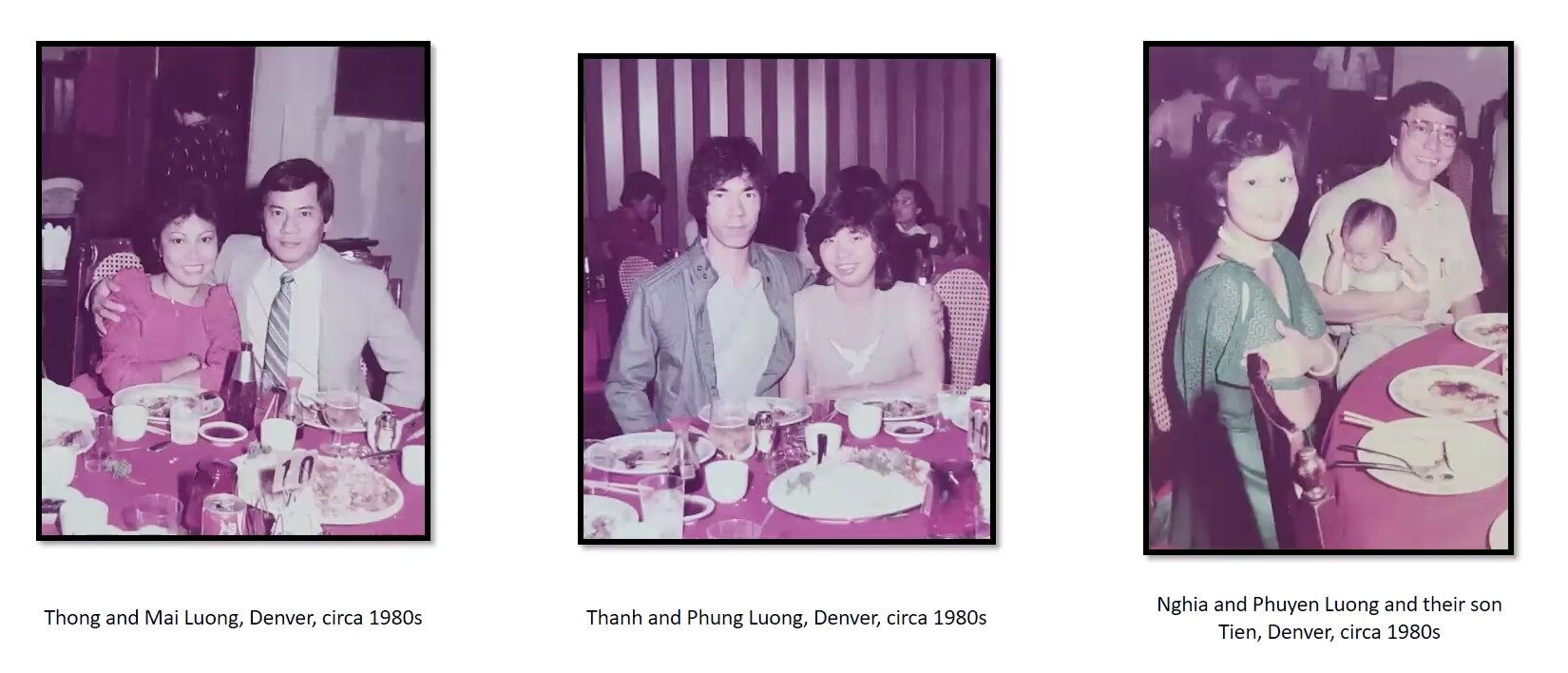Family photos of the Luong brothers, (original owners of the Far East Center) and their partners.