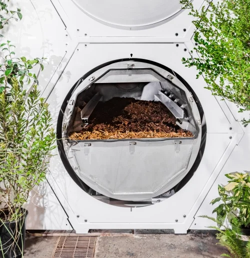 Human composting doesn’t mean you’re tossed into a bin with potato peels, crushed eggshells, and coffee grounds. Rather, you’d be placed in a metal or wooden vessel, enveloped by organic materials such as wood chips, alfalfa, and straw, and then slowly reduced to a nutrient-packed soil. The process can take six weeks to six months depending on the methods used.