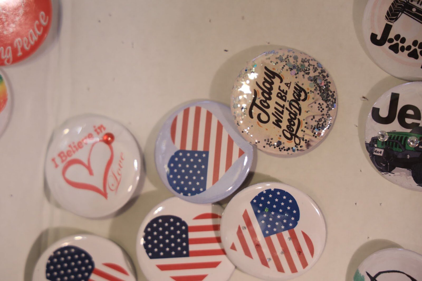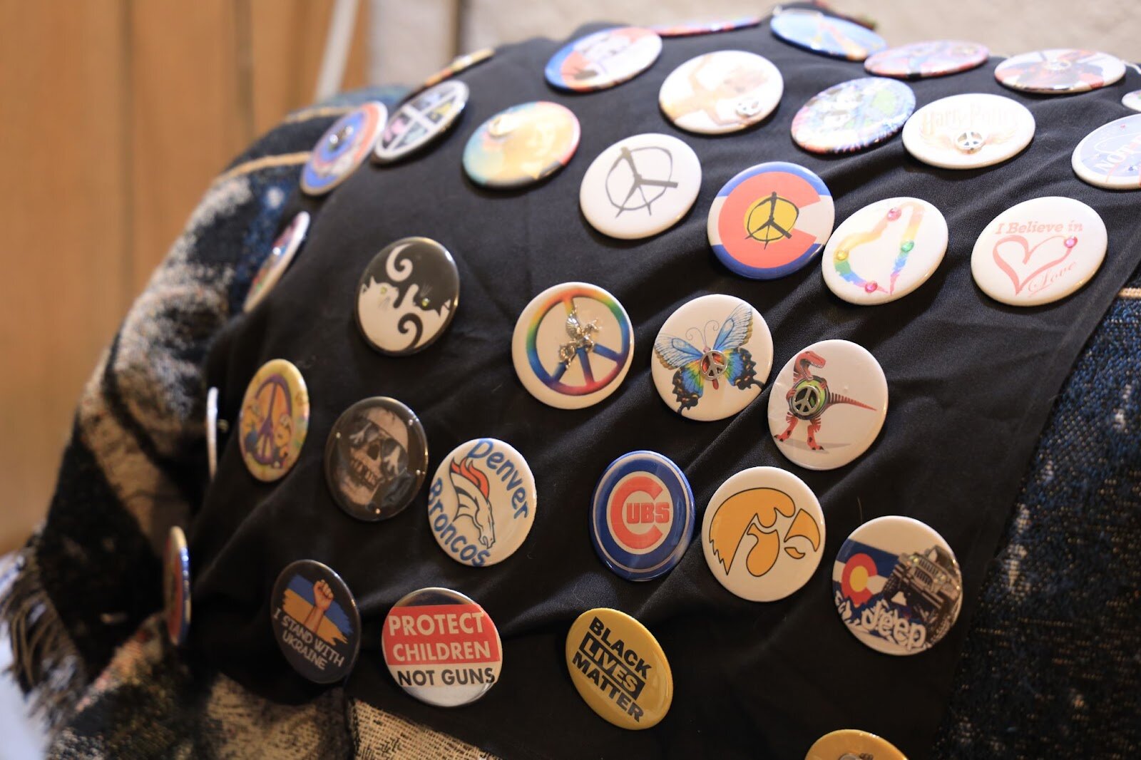 Many of Howes’ buttons center around themes of peace, encouragement, and love.