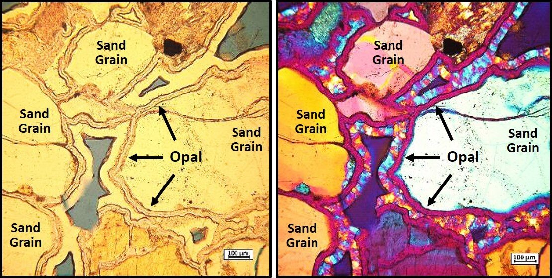 However, he notes that the trace amounts of opal present in these conglomerates are so microscopic, that anyone thinking about opal-hunting should use their time more wisely.