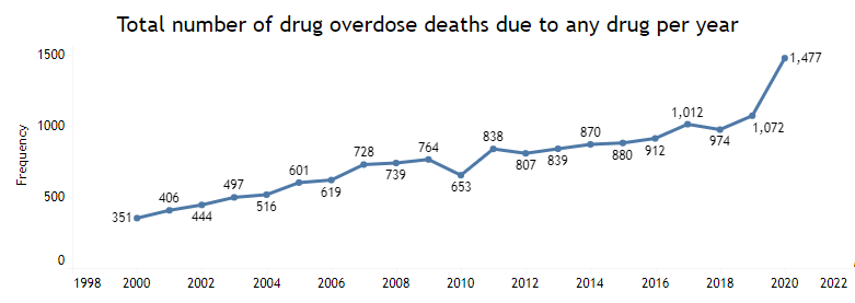 That rise has been both a statewide and national trend. Data from CDPHE show a record-high 1,477 Coloradans died from an overdose in 2020.