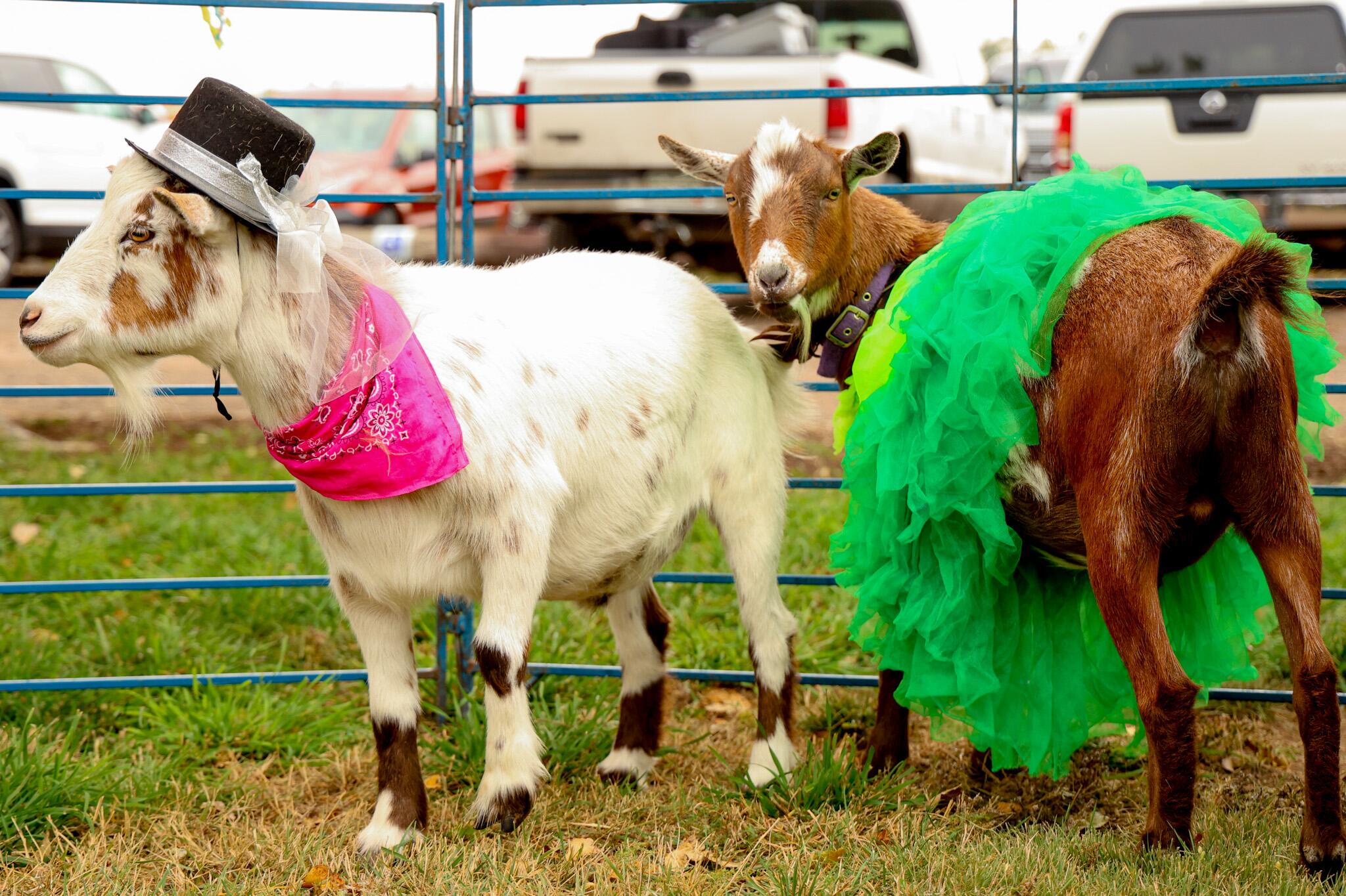 BRIGHTON, Colo. — Nigerian Dwarf rescue goats, dressed in vibrant colors, strutted around a pen at the Fall Shindig at Sonflower Ranch.