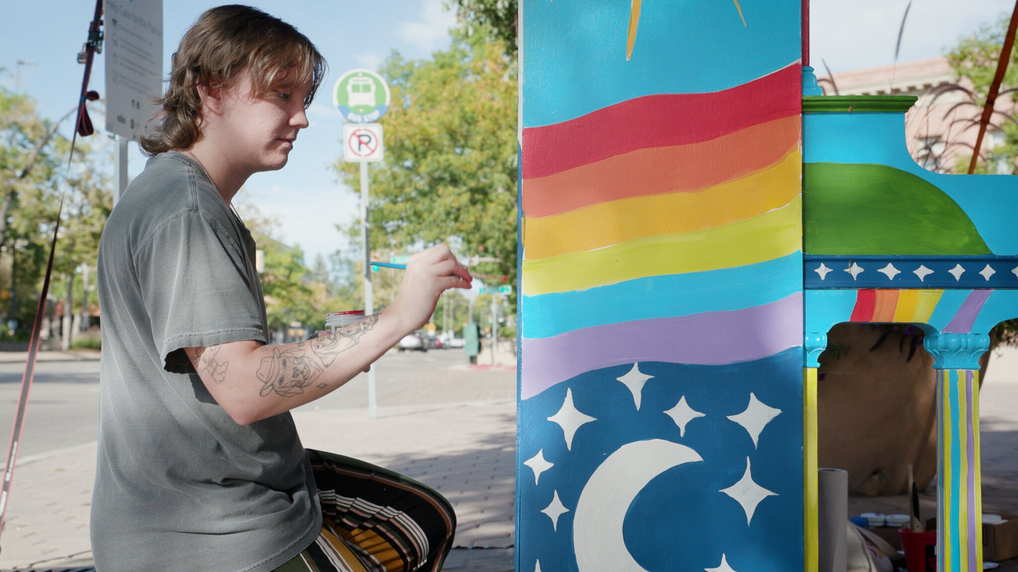 FORT COLLINS, Colo. — Armed with a paintbrush, Theo Altmaier applied the finishing touches to a mural that covers all sides of an upright piano. The piece features vibrant depictions of Horsetooth Mountain, rainbows and an inscription that reads, “Magic is everywhere.”