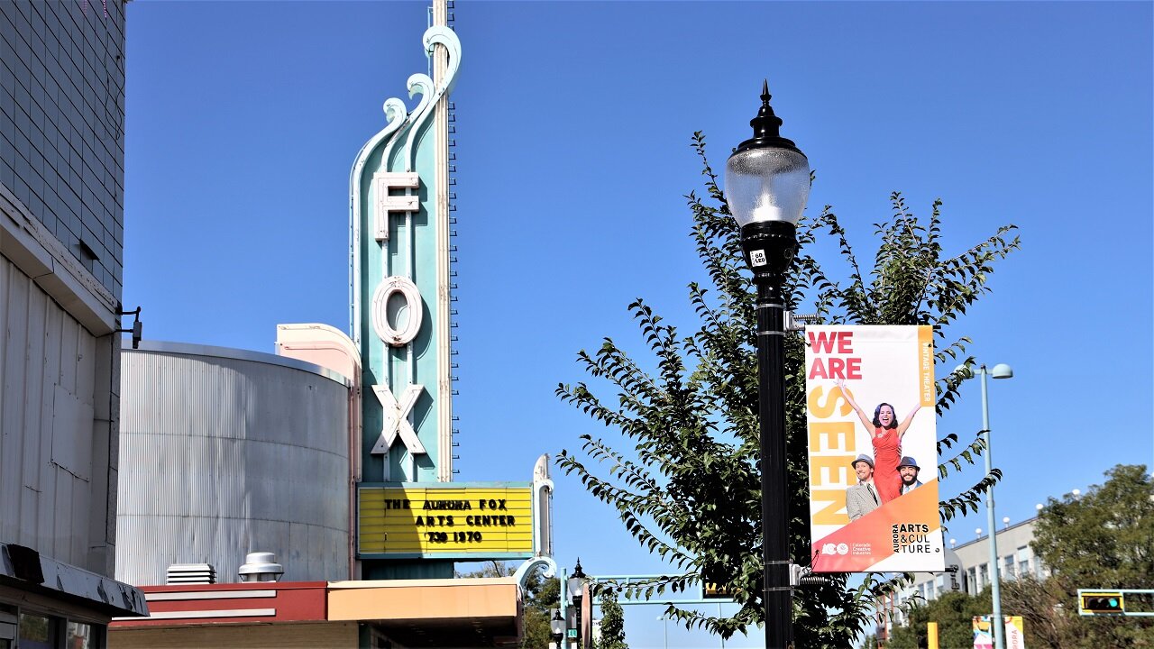 Built in 1946, the Aurora Fox Arts Center serves as a main attraction for this area and did when it was the downtown of the city of Aurora.