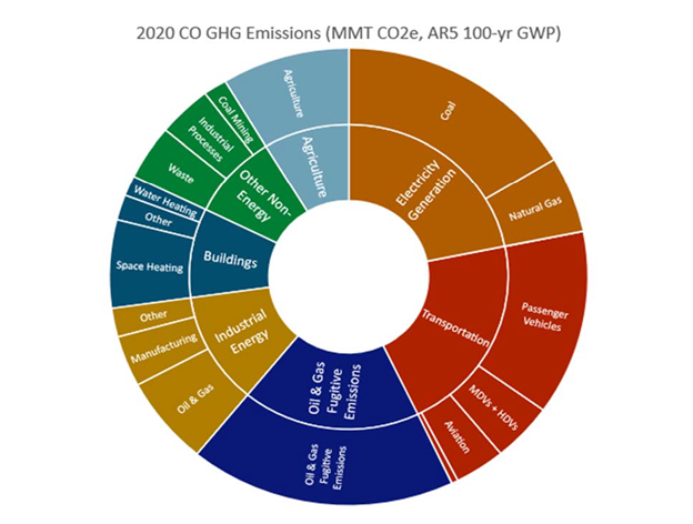 Colorado’s reduction goals were established in 2019 through House Bill 1261, also known as the Colorado Climate Action Plan to Reduce Pollution. The bill aims to reduce greenhouse gas (GHG) emissions from their 2005 levels by 26% by 2025, 50% by 2030, and 90% by 2050.