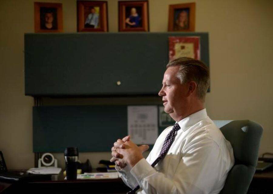 JeffCo Public Schools Superintendent Dan McMinimee, at his office, in 2014 during his second week on the job.