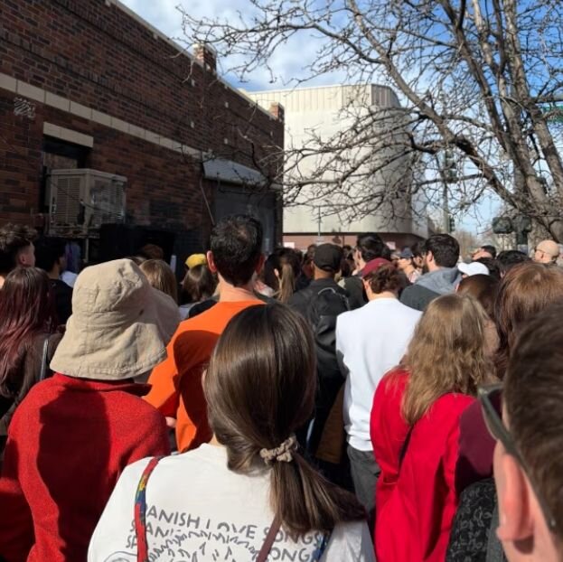 The line moved quickly, until it became clear we were not all going to fit inside the store. Instead, Wax Trax employees brought out a TV and a couple speakers and told us we could watch the Q&A session from the sidewalk. Some people left after that, but I’d say most of us stayed. Even those of us who, like me, were too far back in the crowd to catch a glimpse of the screen. It was basically like listening to a live podcast with a bunch of strangers, and I actually had a great time.