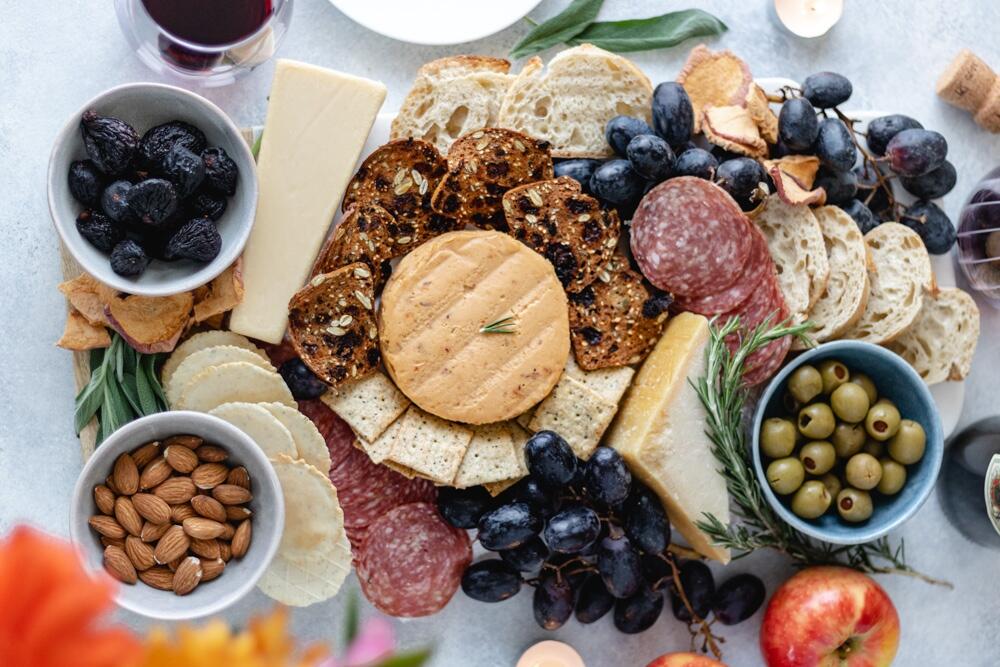 - Cheese – I love the Miyoko’s Garlic Herb Cashew Milk Cheese, but here are some additional vegan cheese options by them as well. Be sure to also serve some brie and Parmigiano Reggiano.
