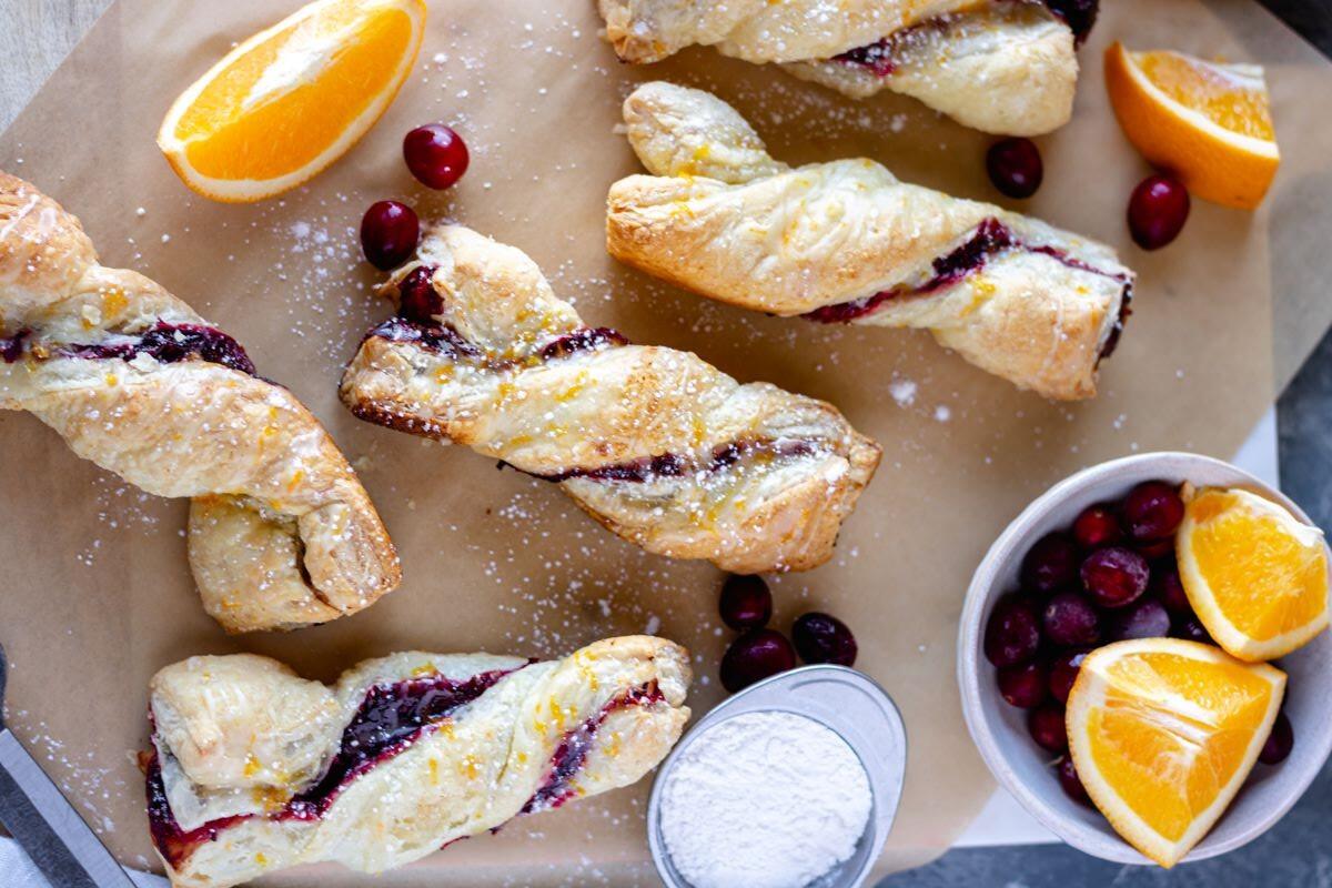 Cranberry-Orange Twists with Orange Icing absolutely scream Christmas! A homemade cranberry-orange compote is slathered in between puff pastry sheets and baked until golden brown. They are then drizzled with a delicious icing.