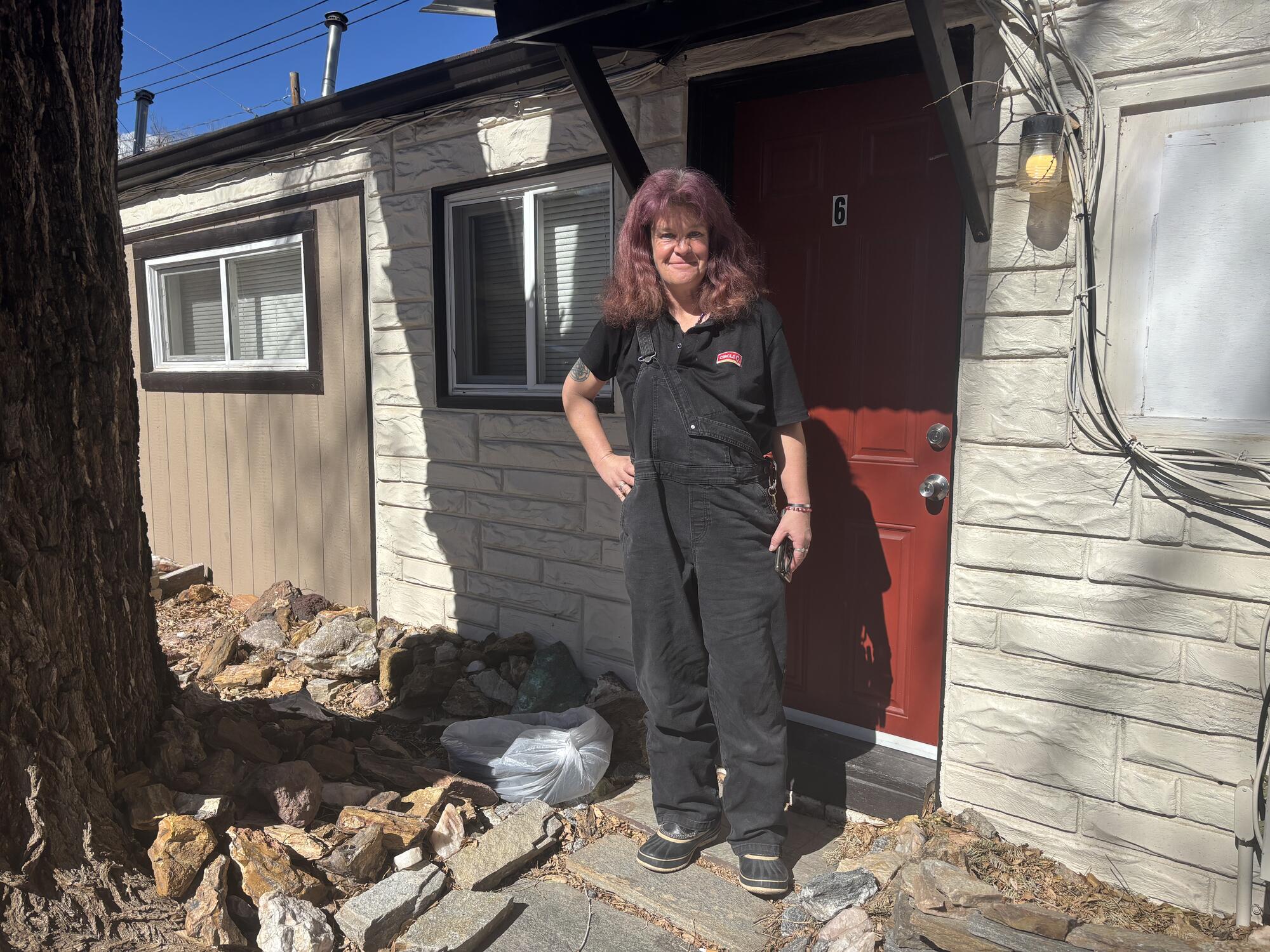 Goldsbury came across a row of apartments built out of a converted motel just off Colorado Avenue. The apartments are chunked into three rows of 12 units, each separated by a dirt road. Goldsbury’s unit is a former motel room, but the space is more than enough room.