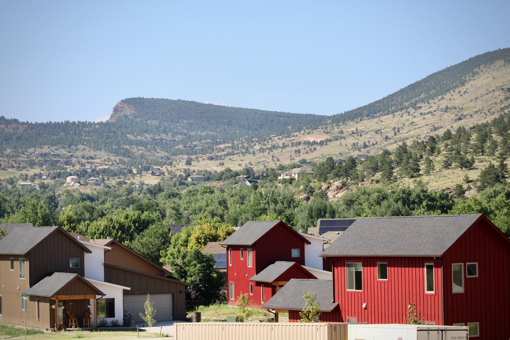 Brand new affordable housing units sit on a hillside above Lyons on August 14, 2023. People who were displaced by flooding have priority access to the new units, but few former mobile home residents are expected to move in.