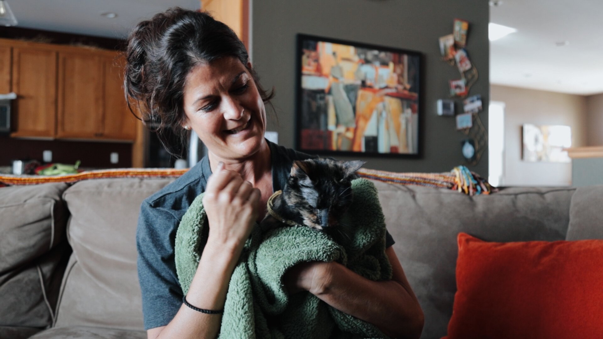 “You don’t know why you were spared. The cat was laying right there,” she said, pointing to the living room behind her, “and the fire was right there.”