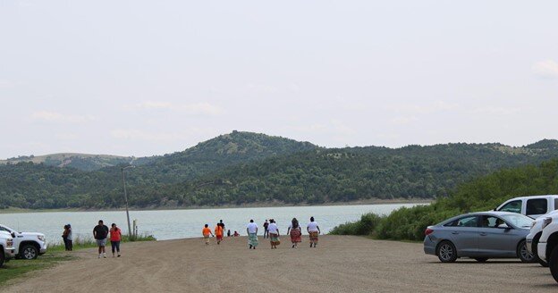 Hundreds of Rosebud Sioux relatives and other Tribal relatives met these nine relatives Friday, July 16, 2021 at the Whetstone Landing in neighboring Gregory County. This landing was the meeting place for the boats that would carry the children to Carlisle. It was the last place their parents would see them.