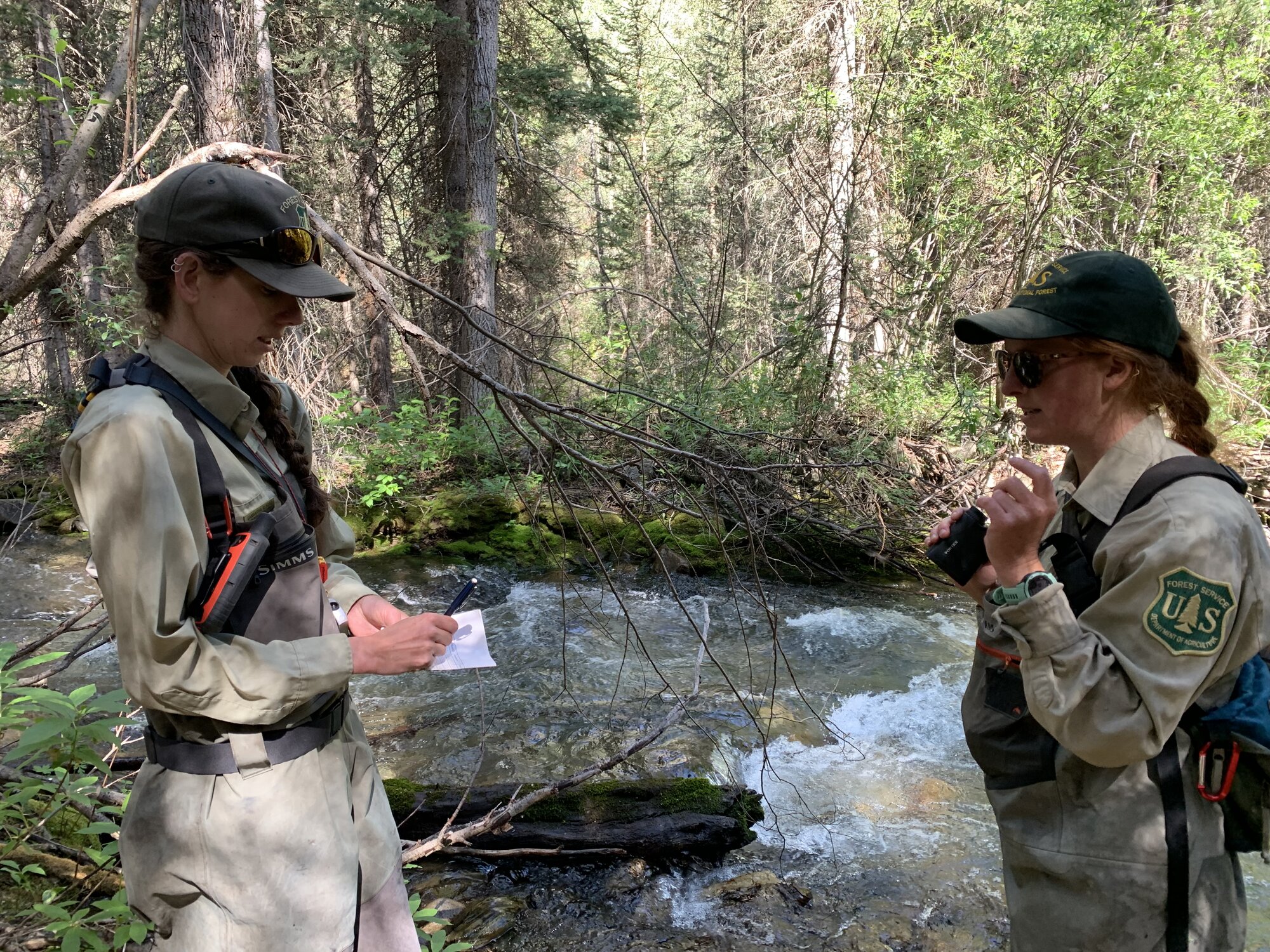 Healthy Rivers has, so far, come up with two ways to do that.One is a public-awareness campaign called Bring Back Beavers that features cute yet edgy beaver characters and catchphrases (“It’s About Dam Time,” for example), with plans to put the slogans on T-shirts and stickers. A new website presents beaver facts (their teeth never stop growing) and busts beaver myths (they don’t eat fish).The other part of the strategy is to fund a program with the U.S. Forest Service for a beaver survey that aims to document more than 200 randomly selected riparian sites on public land in the headwaters over two years to find where beavers are thriving and identify locations where they could be successfully relocated in the future. Healthy Rivers has spent $50,000 on the project, which paid for two Forest Service technicians to carry out the work and has earmarked another $50,000 for next season.Clay Ramey, a fisheries biologist with White River National Forest, is leading the effort, along with two technicians in the field, Samantha Alford and Stephanie Lewis, who are spending the summer chasing beavers. Ramey said that for a watershed-scale project such as this, it is important to analyze data collected from around the entire region, not just in places where beavers live.“Beavers come and go, so measuring known sites is not helpful,” he said. “We are in the habitat business, so we want to know the big-picture questions like where do we have beavers, where do we not have beavers and what is the habitat like at the places where we do have beavers and what is the habitat like at the places where we do not have beavers.”To that end, Alford and Lewis have been heading into sometimes-remote sites on streams throughout the watershed — North Thompson Creek, Fryingpan River, Conundrum Creek, Hunter Creek, Snowmass Creek and others — to measure the width of waterways, the slope of streams, the types of vegetation present and any signs of beaver activity, past or present, such as dams, lodges or chewed sticks.