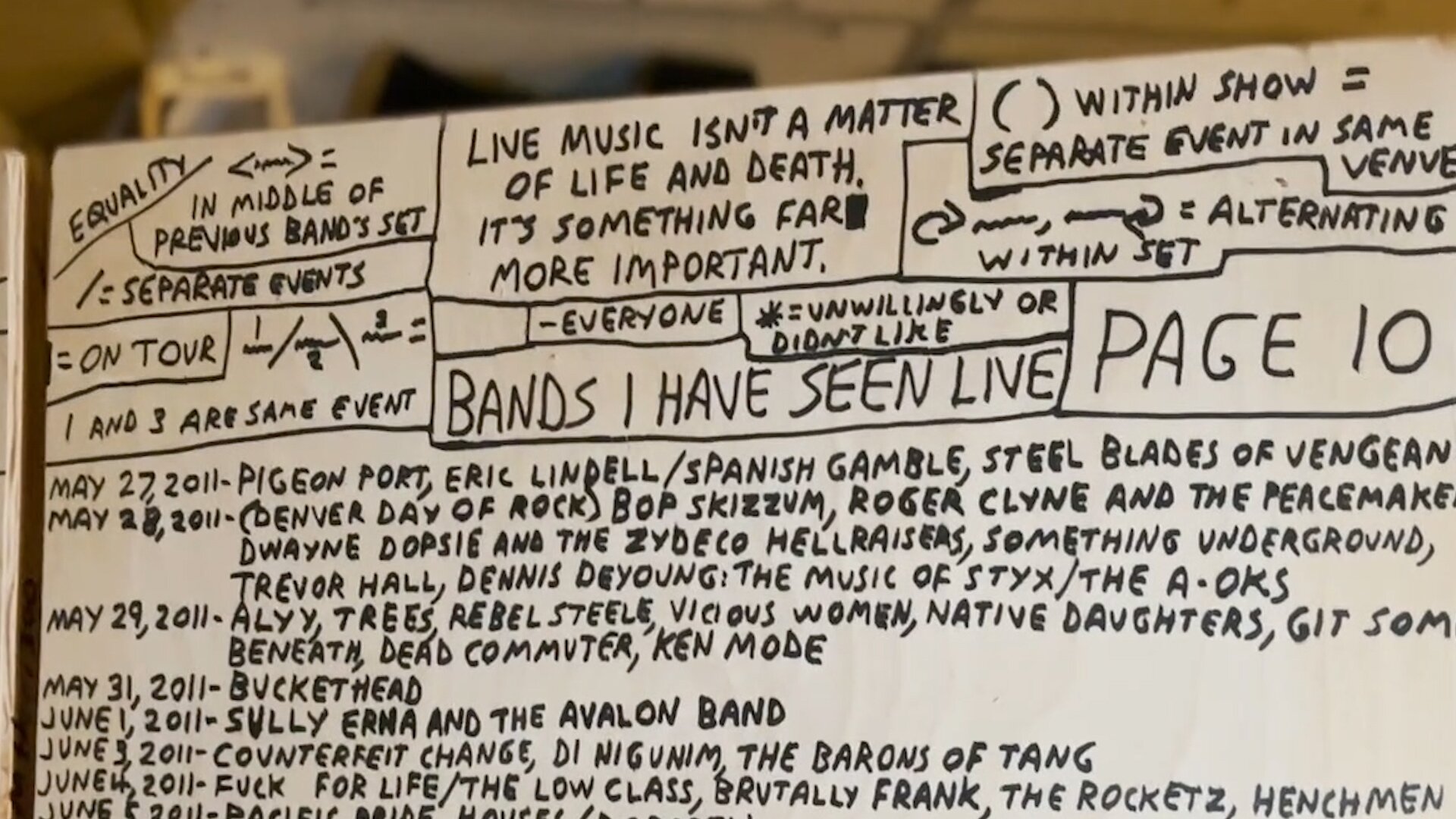 “I absolutely remember writing this down,” he said, pointing to the title of the list, “Bands I Have Seen,” along with the first scrawls listing concert dates.