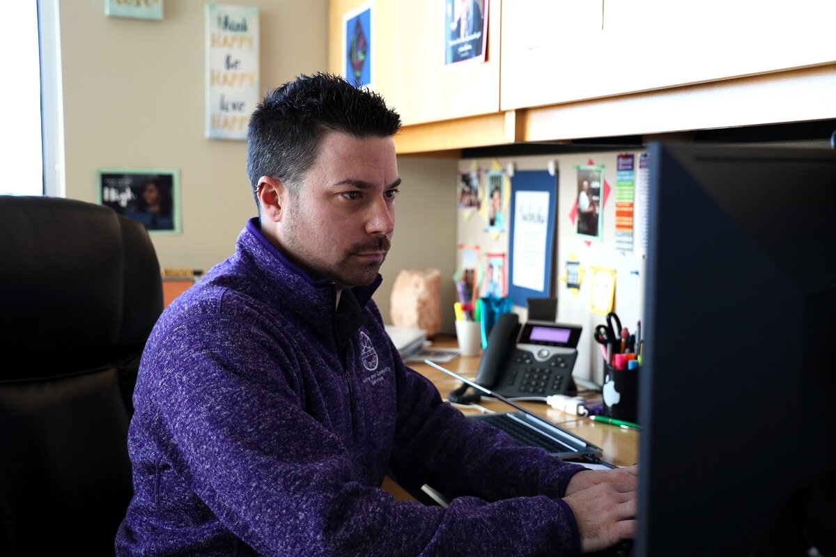 Joseph DeHerrera in his office on Feb. 1, 2024. At the time he was the Aurora Youth Violence Prevention Program Manager and AuroraSAVE Co-Director.