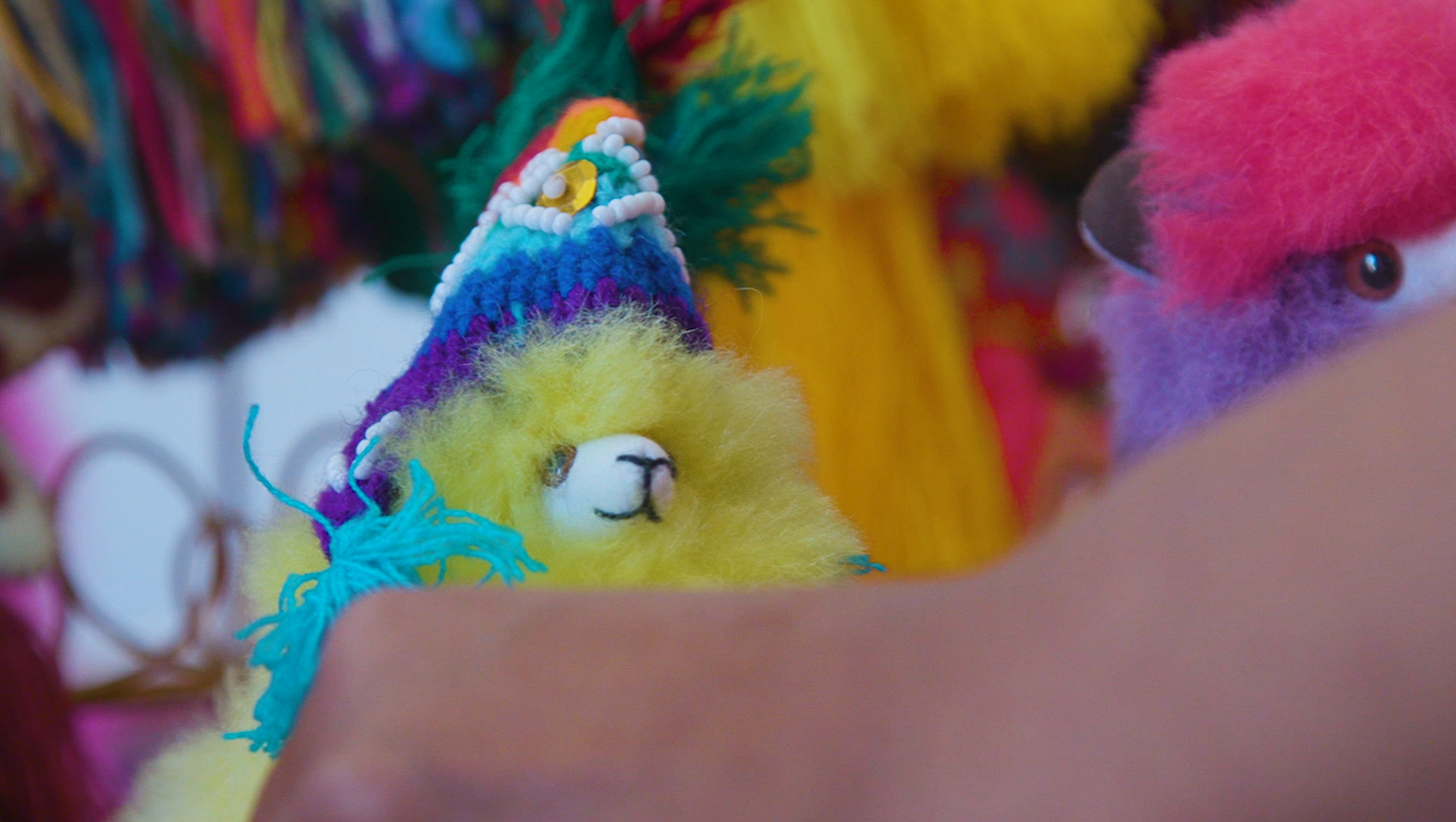 Roxana Urpay offers little, hand-made traditional Peruvian hats to go with My Momotoro’s brightly-colored llamas and alpacas.
