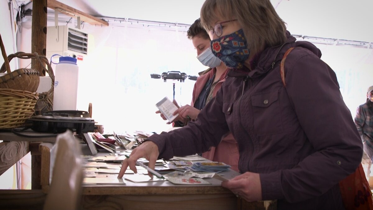 Their dad, Eric Couture Sr., said, “The kids love it. This is their favorite place to be. They get to see everything that it takes to grow things — not just planting a seed, but the whole maintenance of it.” “We’re losing this kind of knowledge as our generations don’t pass the information down,” he added. “We didn’t have this kind of stuff in high school.”The family has come to show their support for the seed swap.“The seed swap is an opportunity for people who garden to bring seeds they’ve saved, and trade them with each other, and for people who are just getting started to come receive seeds,” said Farm Coordinator Ruthie Markwardt. “These are seeds that have been adapted to this region because they’ve been grown here, sometimes for generations. Some of them for up to hundreds of years. So the seeds that we’re sharing today are more resilient. It also keeps things in the community. It keeps us trading, sharing, and mutually supporting one another.”Flying Pig has hosted the Colorado Springs Seed Library for four years. “People can check out seeds year-round, and can contact us if they’d like us to come to their events. The idea is that we can bring seeds to community groups, rather than them having to come to us. We’re trying to spread seeds as far as possible,” said Markwardt. Last spring “was a big shock for a lot of people,” Markwardt said. “When the grocery stores were empty, we realized that we need to rely on our neighbors and on our local foodshed a little bit more. The support for local food in the last year has been overwhelmingly amazing. I hope we can continue that going forward.” “Especially when students come to the farm, I can tell they’re craving that interaction with each other,” she said. “They’re craving being outside after being trapped in their houses and on their computers. So it’s really wonderful to see that re-engagement happening — and this is the perfect season to do that.”