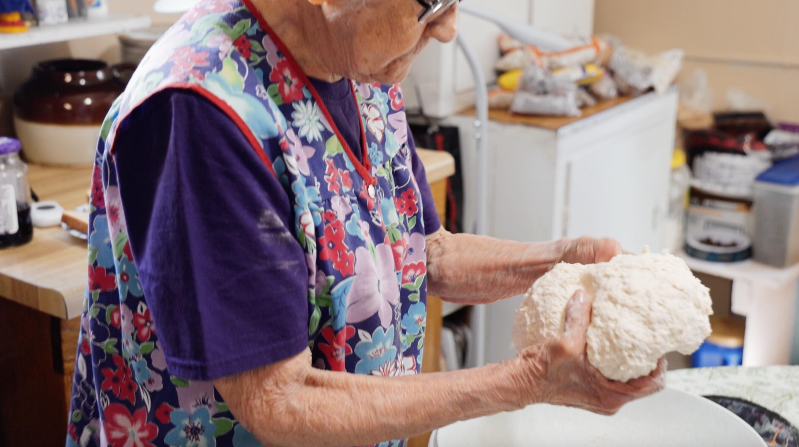 The dough is formed by hand into small discs, then flattened with a small rolling pin Garcia said her late husband fashioned from a broom handle many years ago.