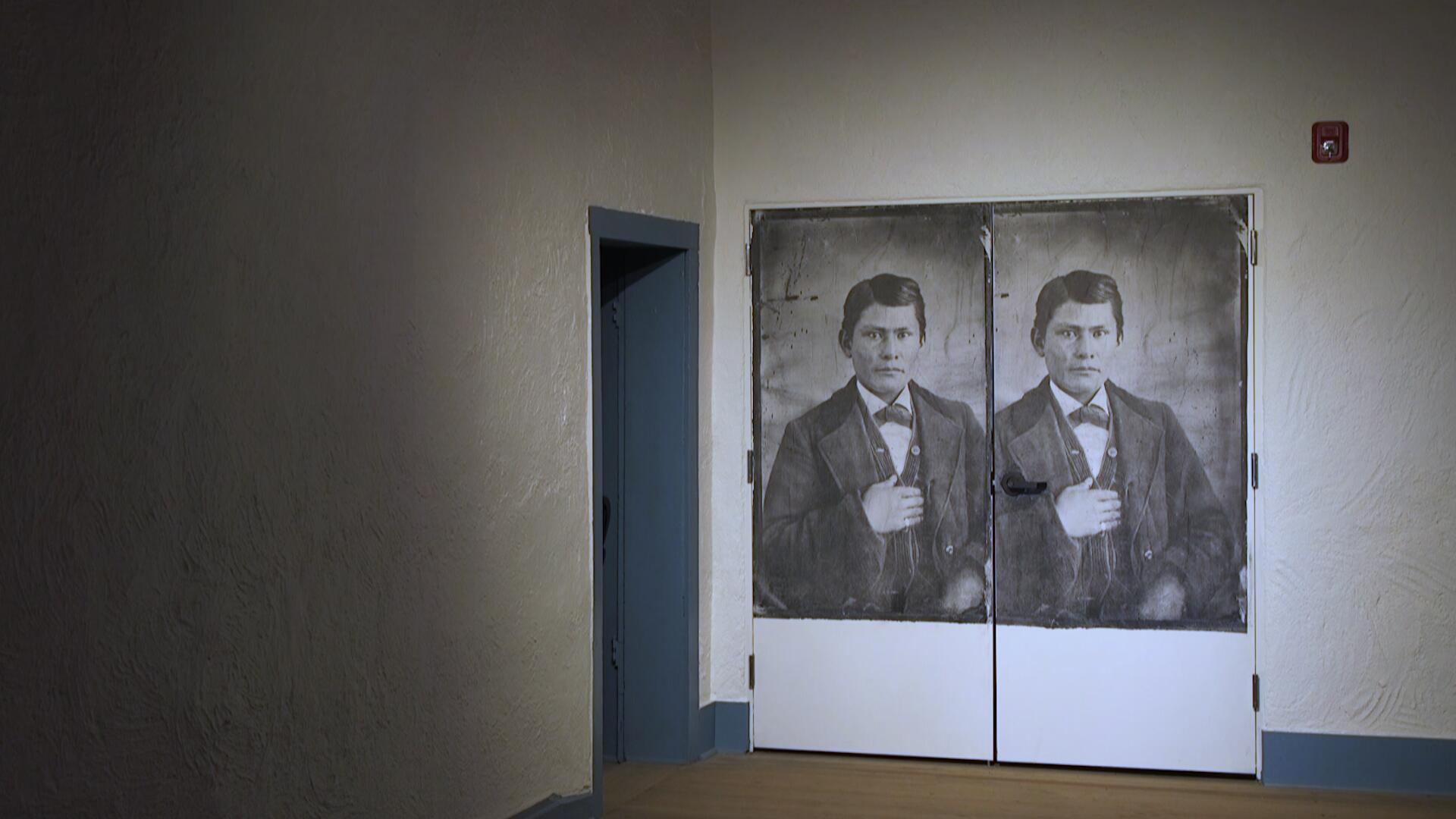Tragic stories were uncovered through the unearthing of photo images used in the exhibit. Gabriel Woodson, an enslaved Navajo person, was 12 years old in a photo he stands for in his best clothes, positioned beside a doorway of the exhibit. Woodson became an alcoholic and was murdered in a bar fight in his late teens.