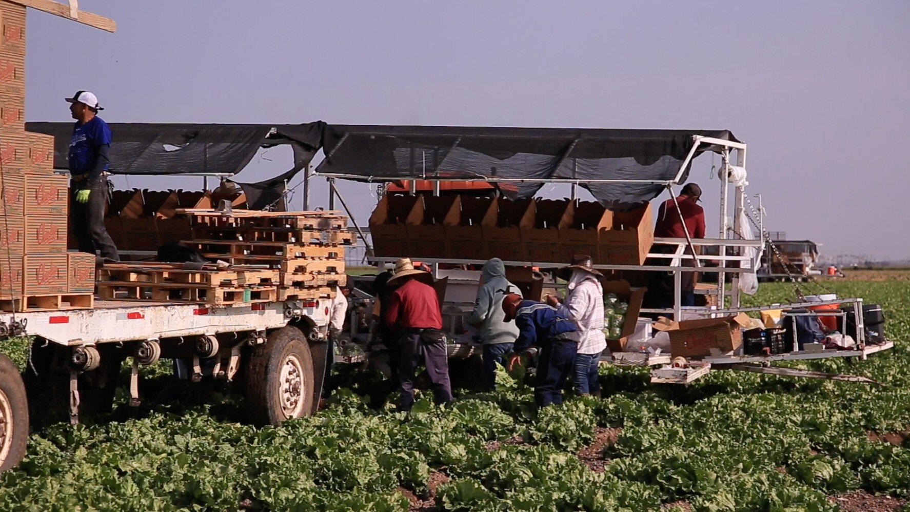 Music and conversation filled the air as David and other workers chopped rows of lettuce. It was a fast operation as workers wrapped each head of lettuce in plastic and loaded them into boxes perched on a tractor that slowly rolled forward, always reminding the workers to keep moving.