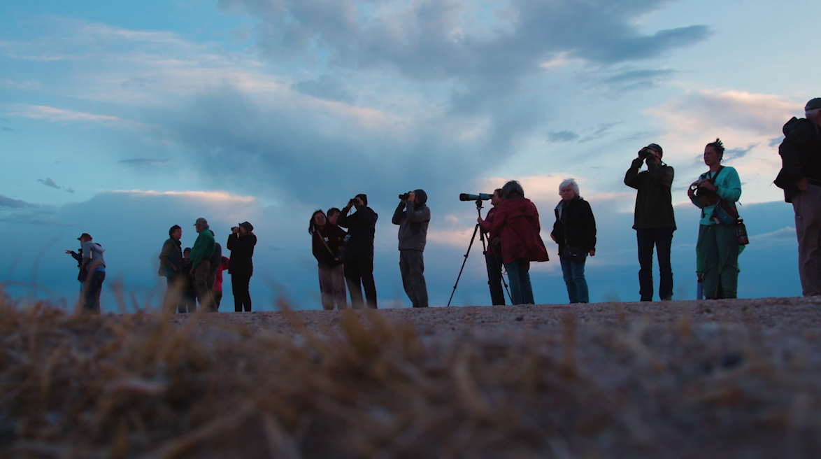 Birders scan an early-dawn horizon for signs of the elusive Mountain plover.