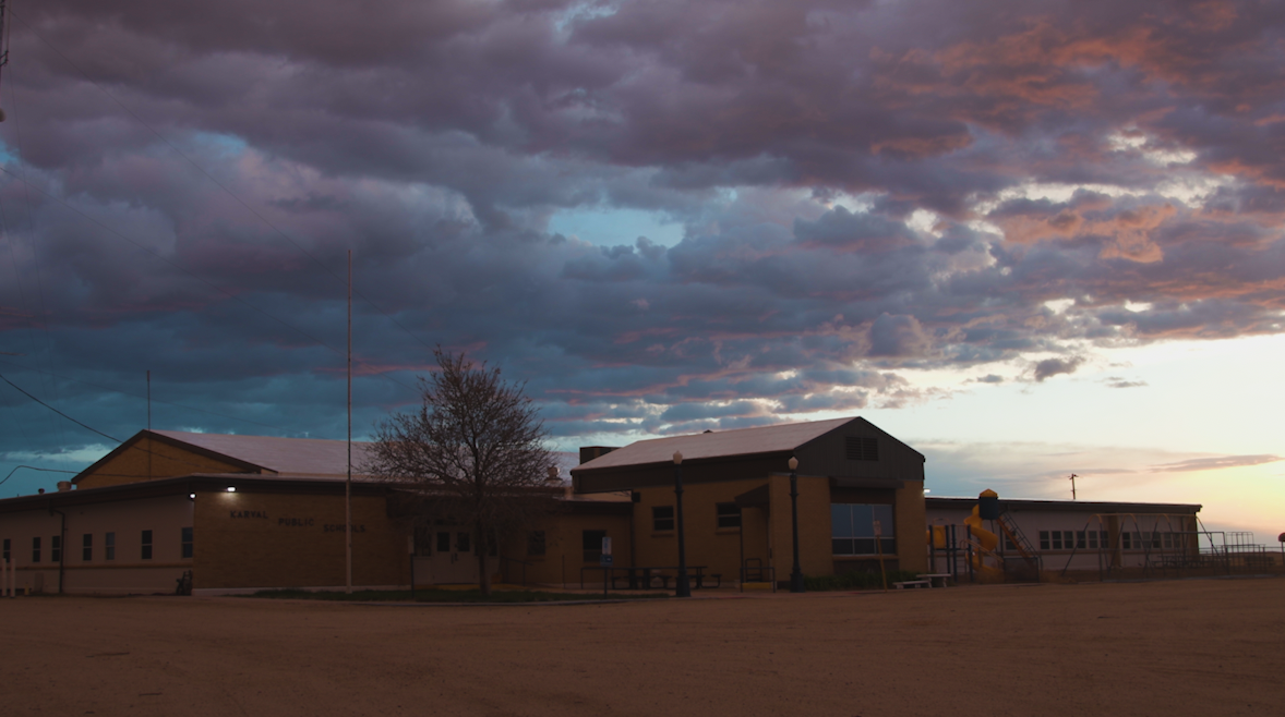 A stormy sunrise at the Karval’s single K-12 school.