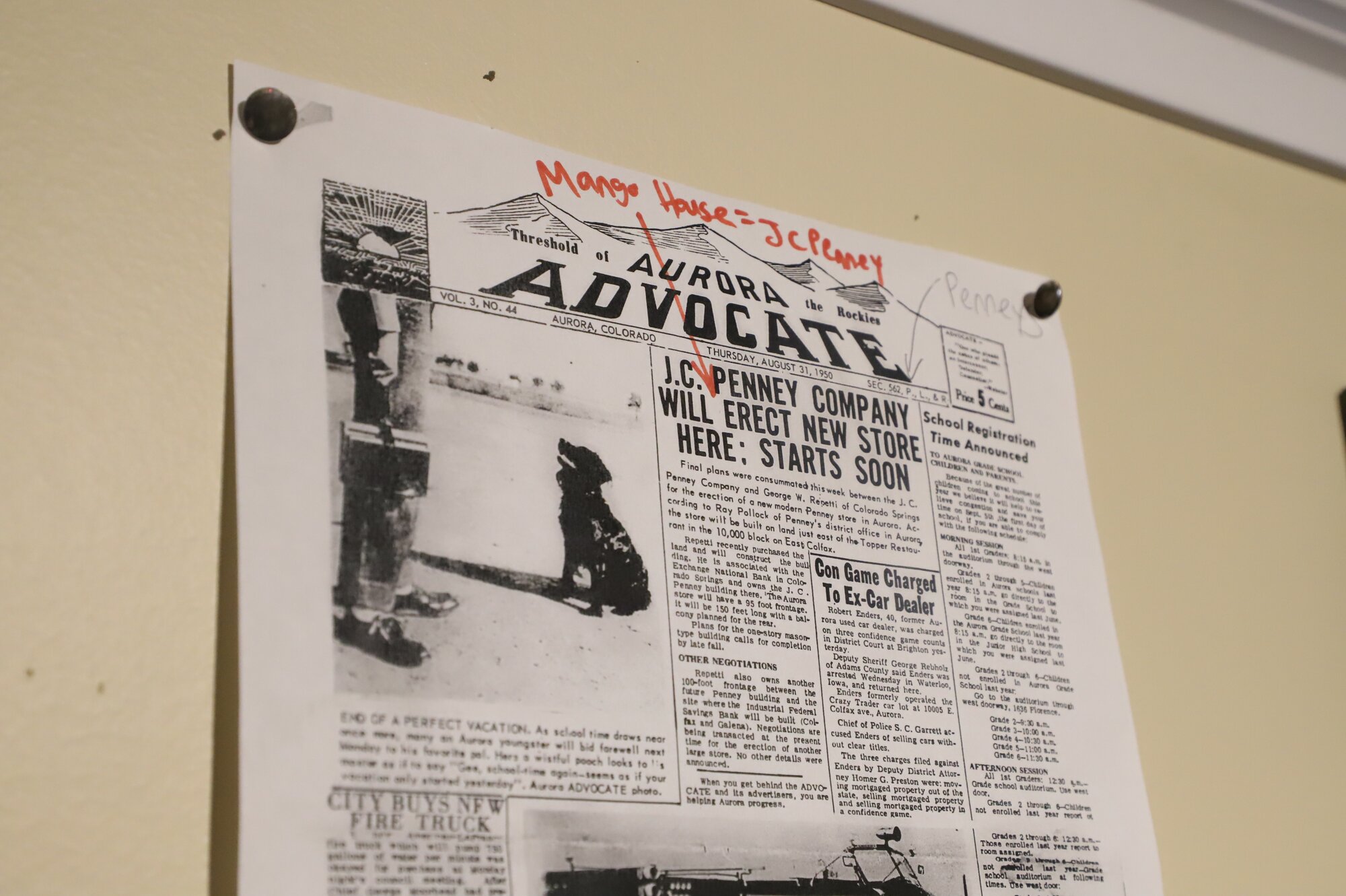 Copy of an issue of "Aurora Advocate" highlighting the history of the Mango House building.