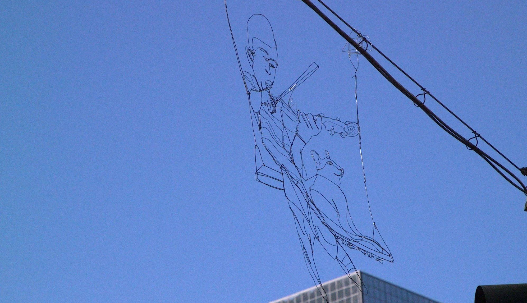 Near the intersection of 18th Avenue and Sherman Street, a wire statue of Elijah McClain playing the violin adorns some of the city's electrical wiring. If you stand in the right spot, it appears as though the statue of McClain is floating above the dome of the Colorado State Capitol building.