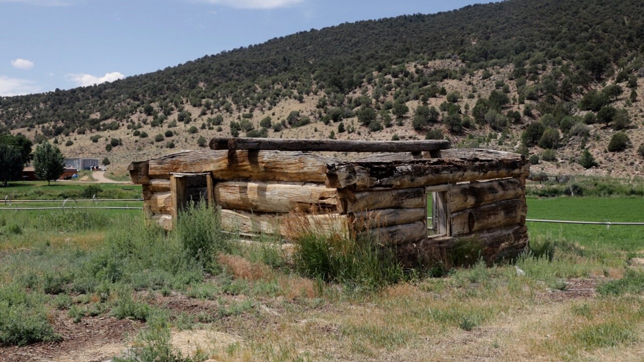 The oldest standing structure on the Roundup River Ranch Camp property is this beaver trapper’s cabin. Photo by Alexis Kikoen, Rocky Mountain PBS.