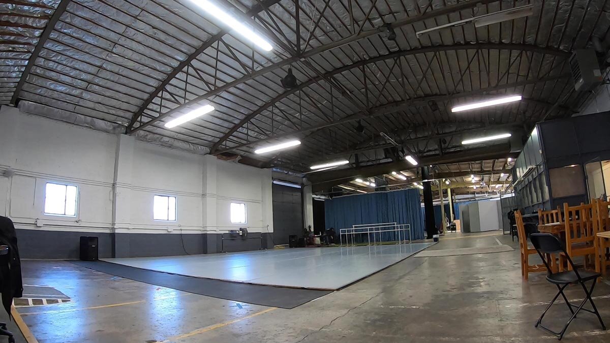 RMPBS toured the new space while the production crew was busy preparing the stage for The Troublemakers. Lights were being positioned, set structures moved, all on the dance team’s day off.