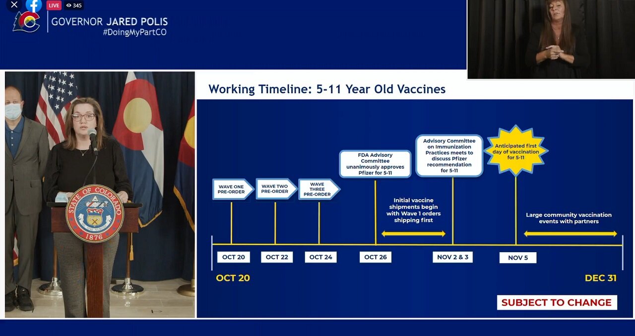 The FDA is expected to give approval on Friday, October 29. Based on these expectations the state put together the timeline below. The goal is to give out the first shots to that younger age group on November 5. Polis said the state's goal is to vaccinate 50 percent of Colorado's children in that age group by the end of January 2022.