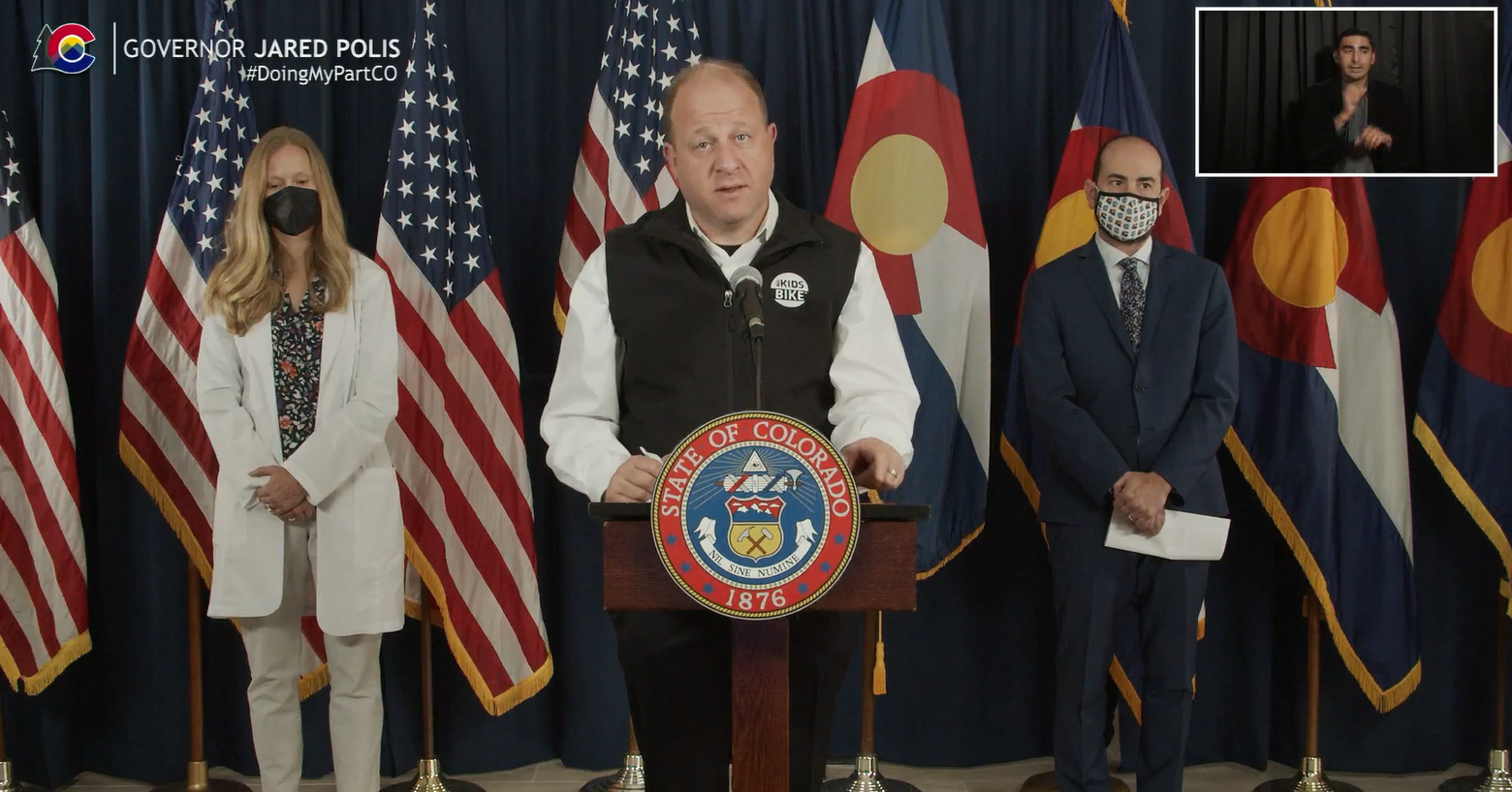 Governor Polis was joined by family physician Dr. Kyle Leggott from UCHealth and pediatric infectious disease specialist Dr. Sean O’Leary from Children’s Hospital Colorado. Both doctors expressed the importance of receiving both immunizations to prevent hospitalization and extreme COVID symptoms