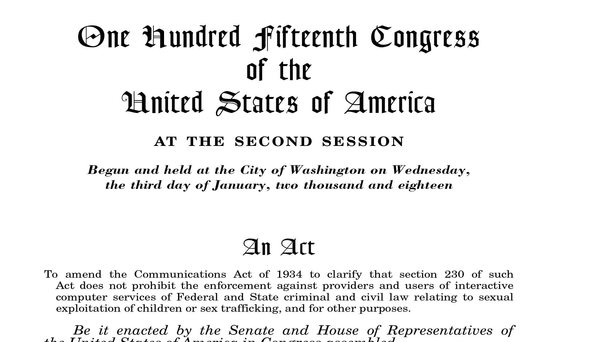 The legislation, which had broad bipartisan support, makes clarifications to the Communications Decency Act of 1996. Enacted when the internet was in its infancy, the CDA gave internet service providers and websites wide latitude to transmit and share most content.