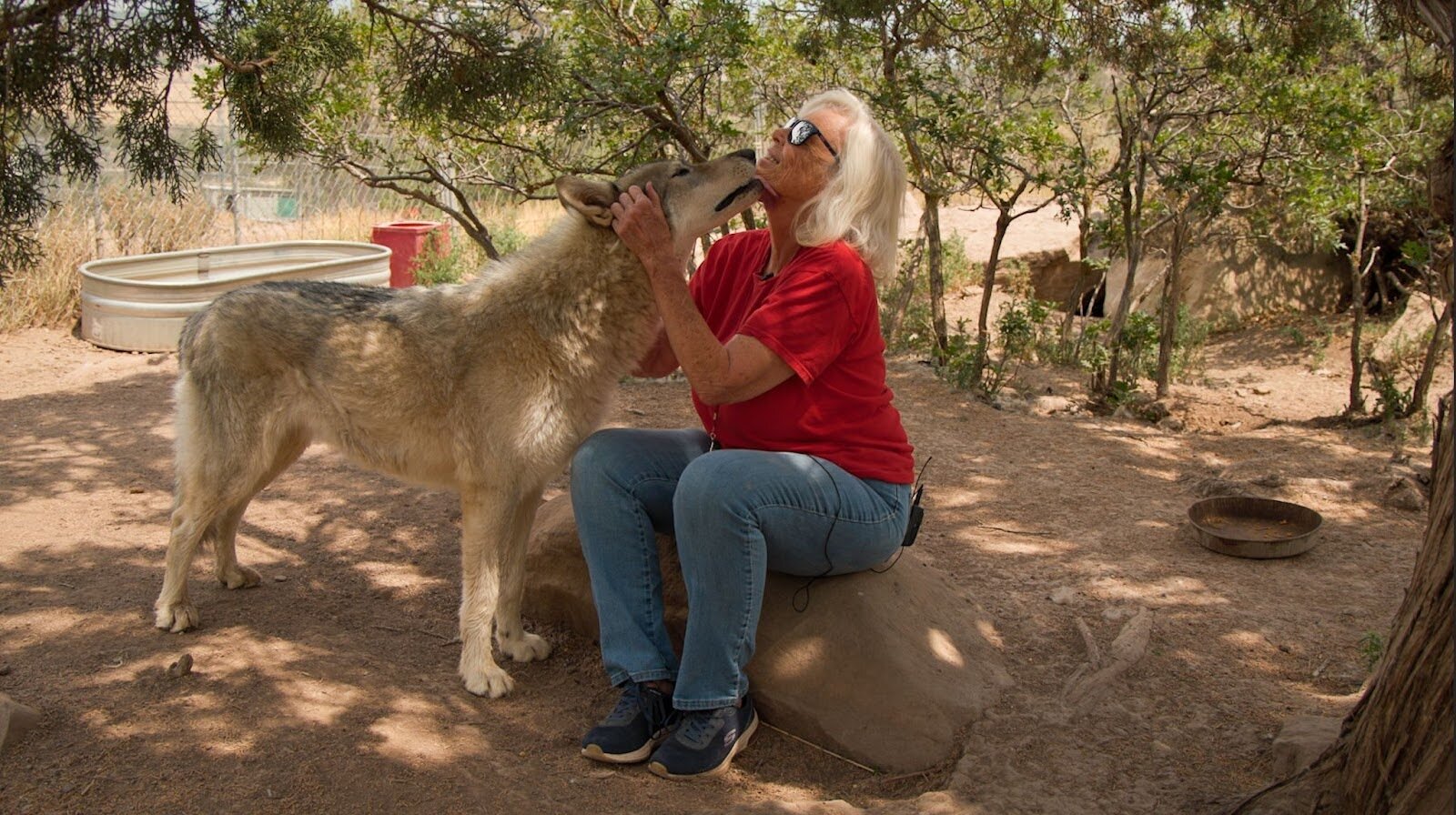 IGNACIO, Colo. — Paula Woerner stepped inside the fence at Wolfwood Rescue and was greeted by Xena, a 7-year-old wolfdog. Xena followed Woerner to a rock and licked her face.