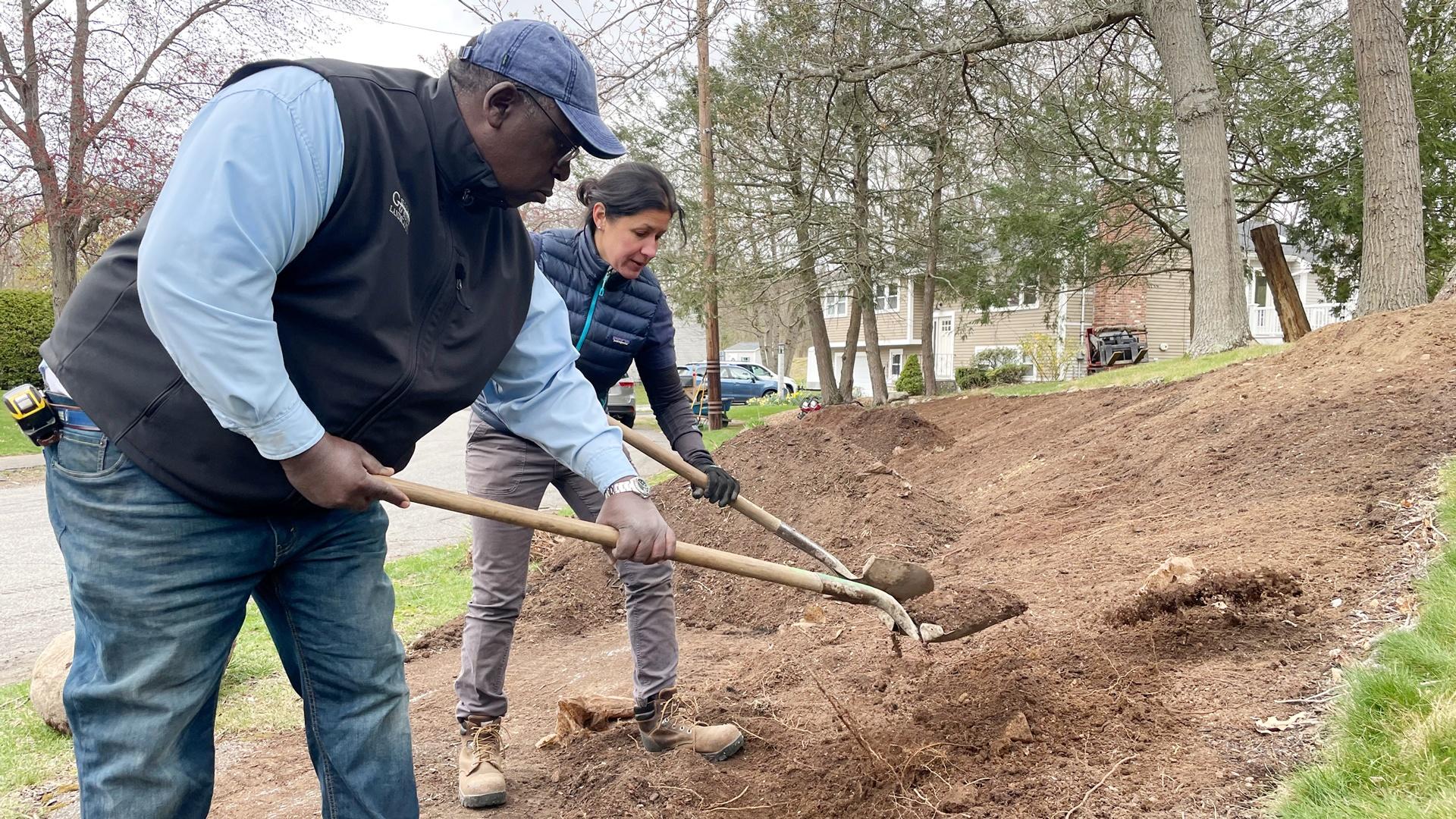 Lee Gilliam helps a homeowner improve the soil conditions of her garden bed before installing new plantings; a New Hampshire painter and business owner shares her journey in the trade; Heath Eastman helps a homeowner mitigate bathroom moisture by installing a remote bath vent and timer switch but runs into some trouble when he finds old wiring in the wall.