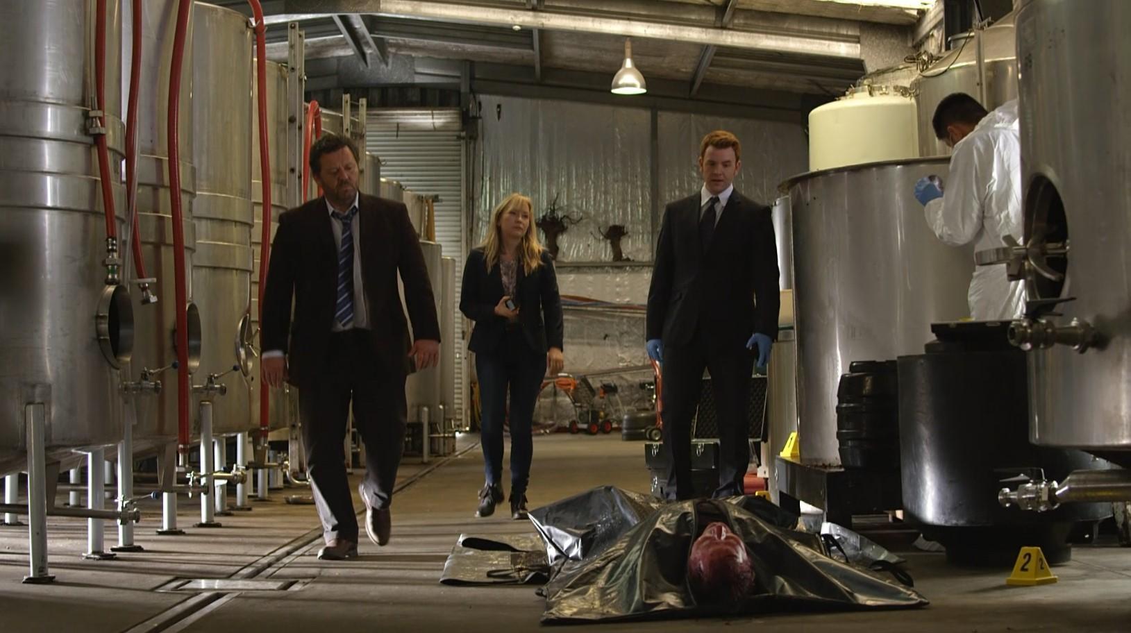 The morning after choosing the winner of the annual Brokenwood wine show, a guest judge is found dead in one of the loser's vats of fermenting Pinot noir. The vintner in question is more concerned with another "crime"-the tampering with her wine before the show. Shepherd and Sims suspect the same criminal was responsible for both offenses.