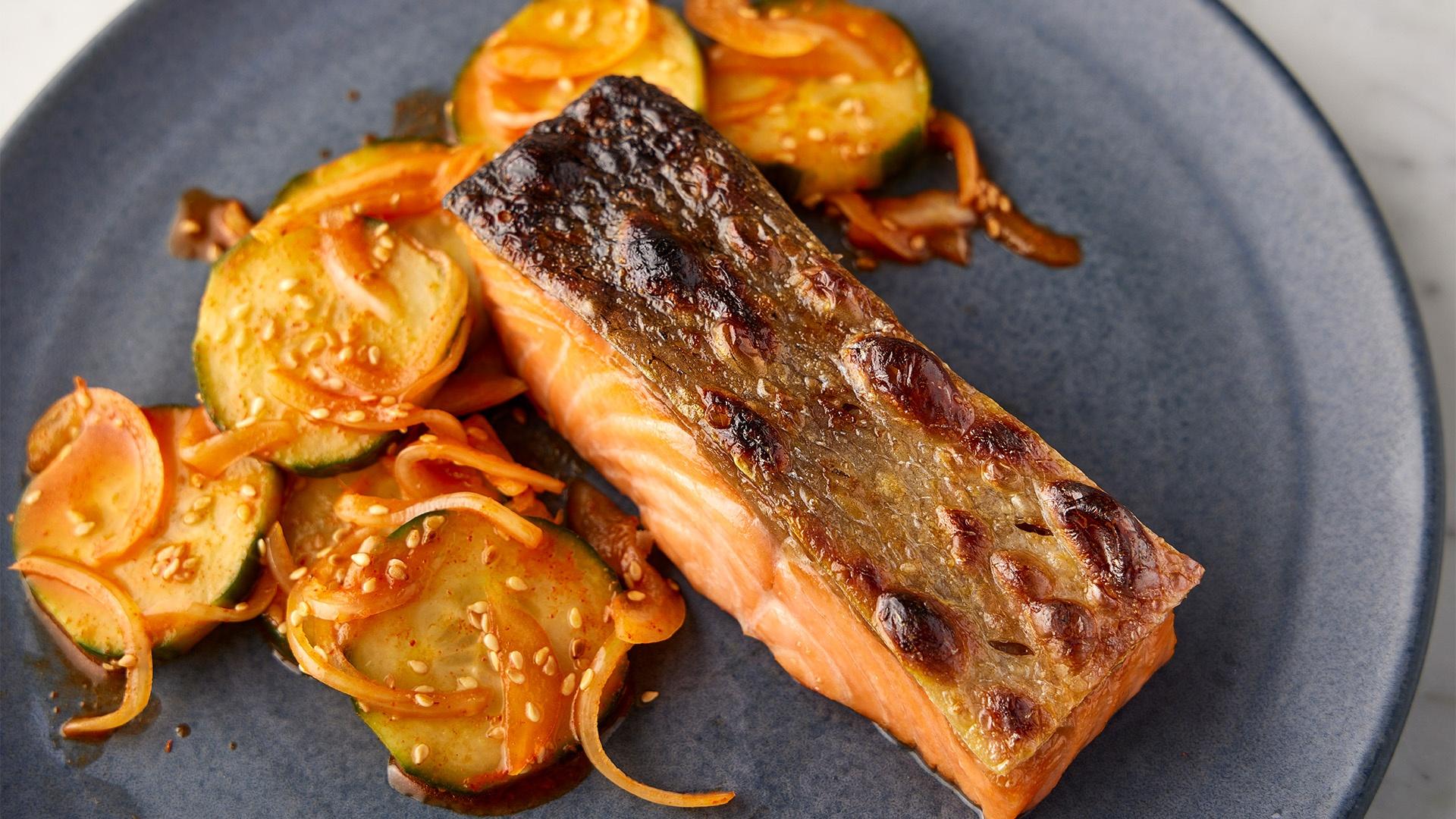 Take the fear out of fish! First, we make Crisp-Skinned Broiled Salmon with Cucumber-Sesame Salad, which borrows a Japanese technique that uses salt to draw out moisture from the fish. Then, we make an Italian Seafood Stew with scallops and clams, as well as Sautéed Cod Fillets with Spicy Cilantro Sauce (Zhoug). Plus, we figure out the best ways to sear shrimp and steam white fish fillets.