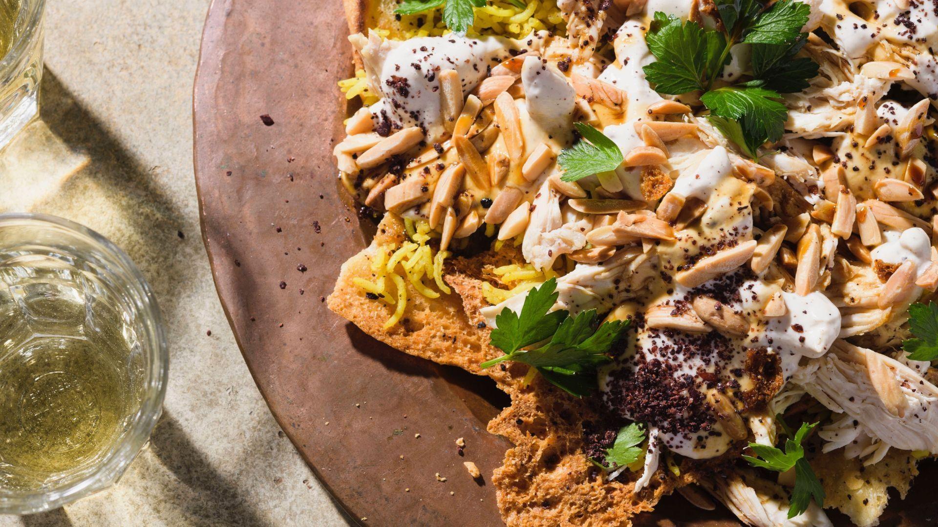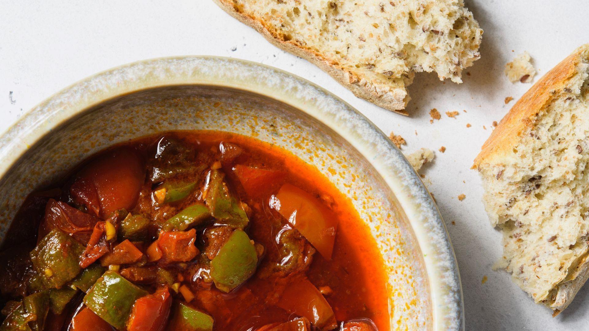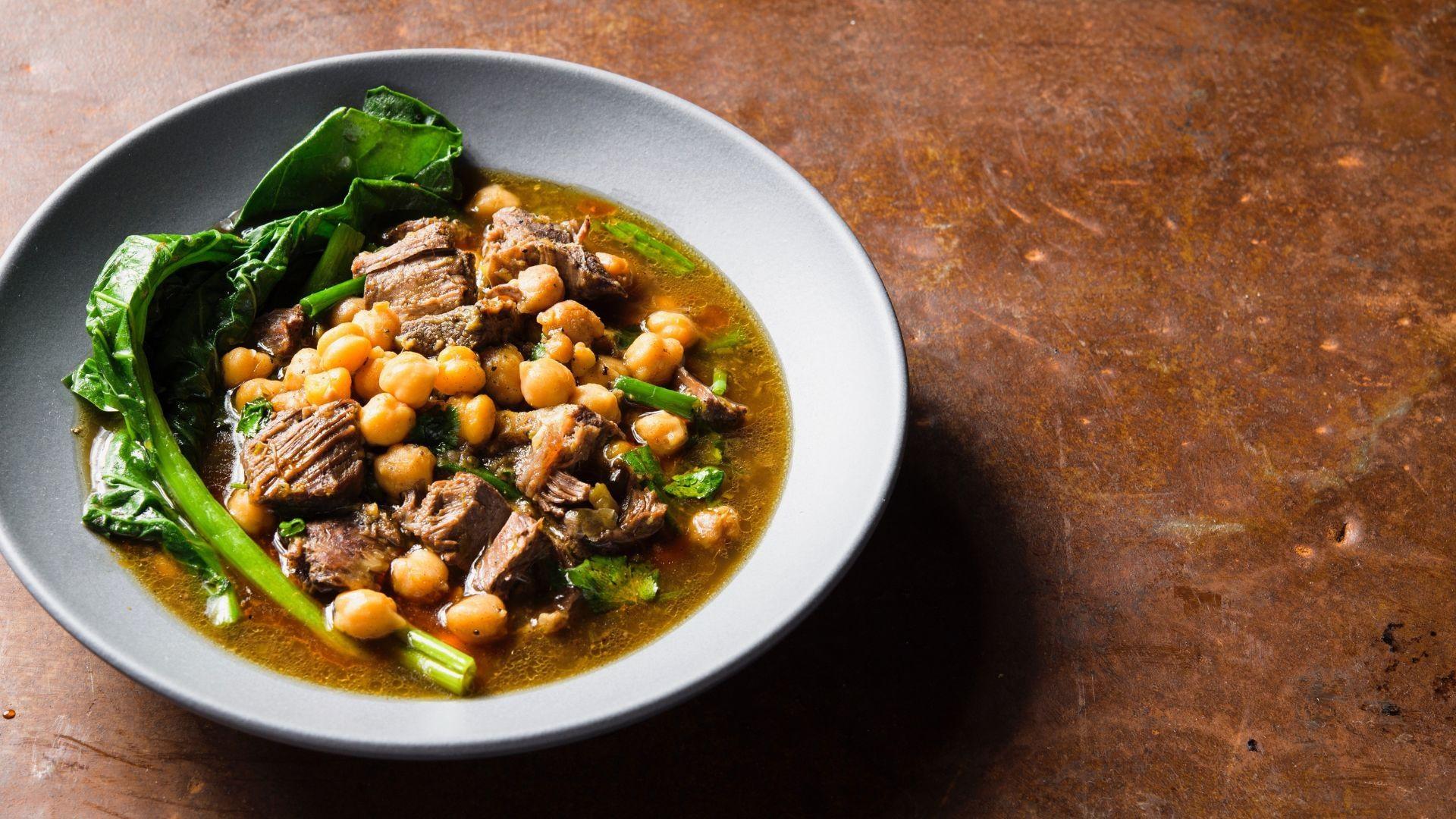 In this episode, we take a trip to Morocco to learn about a traditional, all-purpose flatbread, Khobz. Next, Milk Street Cook Josh Mamaclay makes easy, yet deeply rich and flavorful Moroccan Harissa-Garlic Shrimp. Finally, Milk Street Cook Sam Fore prepares Salmon with Matbucha, a North African cooked “salad” made with olive oil, garlic, tomatoes, sweet peppers and spicy chilies.