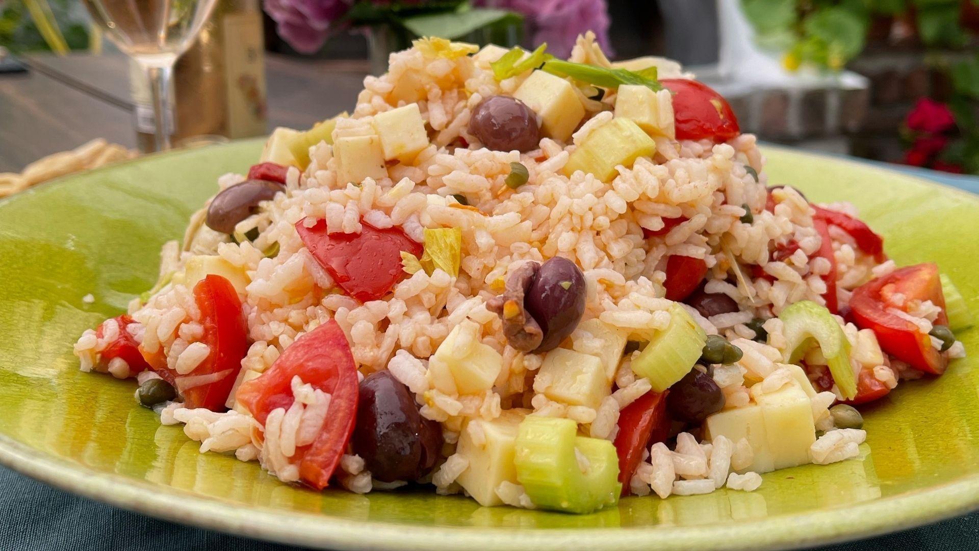Lidia tosses together Arborio rice with bright, flavorful olives, roasted peppers, artichokes, and provolone to create a satisfying and vibrant “Antipasto” Rice Salad. She also pulls together a Sauteed Chicken dressed in a Bright Lemon Caper Sauce over Spinach. Lidia also shares some culinary family moments with her grandson Lorenzo after he prepared her “Mushroom Gratinate” recipe.
