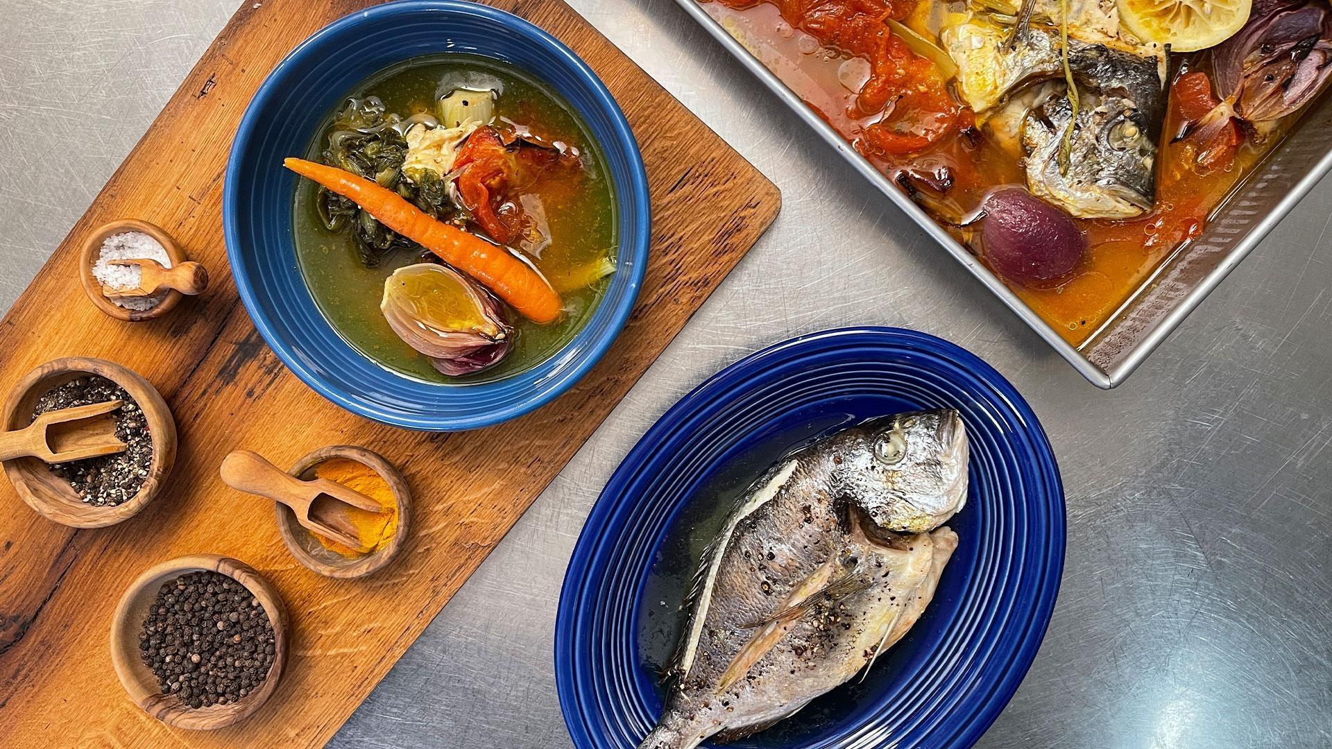 Chef Maria Loi visits stunning Cape Sounio in Eastern Attica, and sets sail on the beautiful waters of the Aegean sea while preparing a simple Horiatiki Salata (Village Salad). In nearby Legrena, Maria and her friend Antonis Zagouris prepare classic Tsipoura Psito (Grilled Porgy) and Calamari Gemisto (Grilled Stuffed Calamari). Back in her kitchen, she invites Chef Jehangir Mehta to cook with her.
