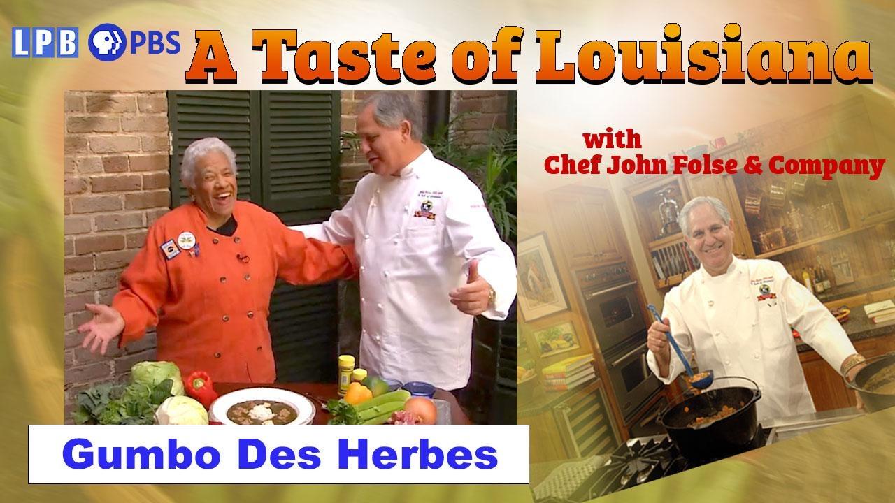 Dr. Gwendolyn Midlo Hall and Professor Eileen Julian give audiences an insight on the roots of much of Louisiana's African-American cuisine. Chef Leah Chase gives Chef Folse a lesson on making Gumbo Des Herbes, a traditional Holy Thursday dish. Judy Whitney Davis entertains the audience with songs from the big house and songs from the field.