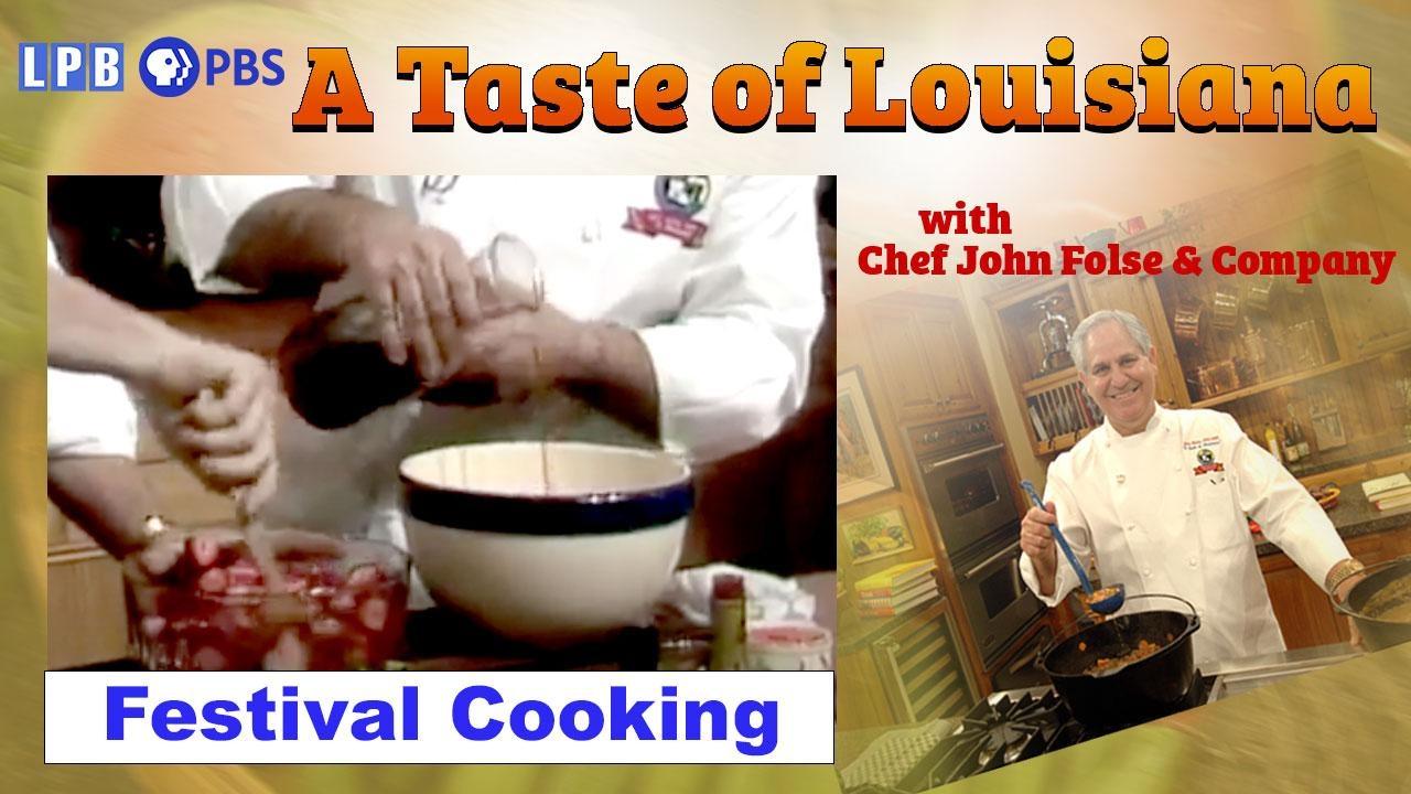In this episode of “A Taste of Louisiana” from January 3, 1991, Chef John Folse cooks Chicken and Andouille Jambalaya, Pan-Sautéed Catfish with Shrimp and Chive Cream Sauce, and Pork Tenderloin Grillades and Grits. He also prepares Strawberries Ponchatoula with guest Leo Honeycutt of WBRZ-TV in Baton Rouge. This episode includes footage of Louisiana festivals. Host: John Folse